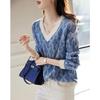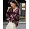 Demana Women's V-Neck Snowflake Jacquard Knit Sweater