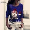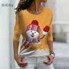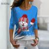 Christmas Snowman Pattern Women Cartoon T-shirts Long Sleeve 3d Print Christmas Street Ladies Tee 6XL Big Size Casual Cute Tops