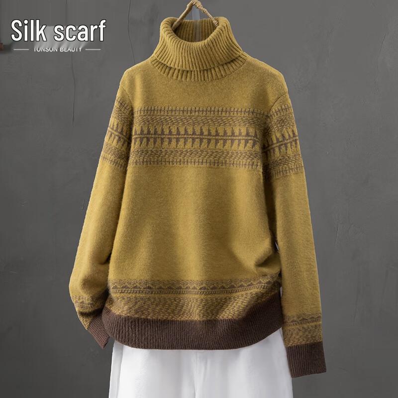 Sweter damski Si Baishe z wysokim dekoltem, z długim rękawem, luźny