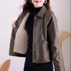 Kurtka skórzana, damska krótka, wiosenno-jesienna damska kurtka ze skóry PU z klapami i aksamitem