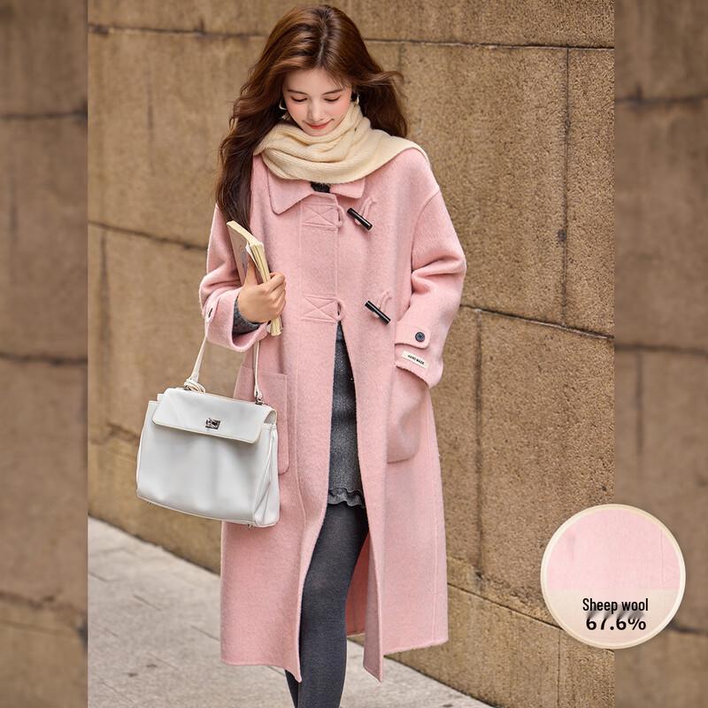Bailuyu Women's Lapel Collar Wool Blend Double-Faced Coat