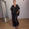 European & American Autumn Print Two-Piece Set: Long Sleeve Top & Wide Leg Pants