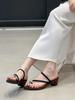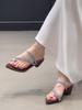 Cowhide version~ retro pointed thick heel heightened one-word set of toe slippers women's summer new French wedge heel toe sandals