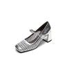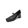 QSDD/7cm small summer square head woven Mary Jane breathable sandals pearl word with shallow mouth commuter woman