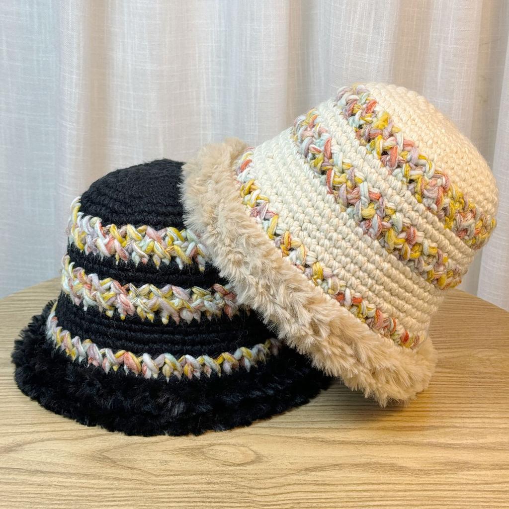 Colorful Knitted Woolen Hat for Women in Winter Large Head Circumference Thickened Warm Plush Hat Versatile Face Showing Small Basin Hat