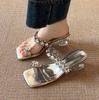 Sheepskin! With skirt slippers women's 2025 new summer wear silver rhinestones transparent thick heel sandals drag exquisite