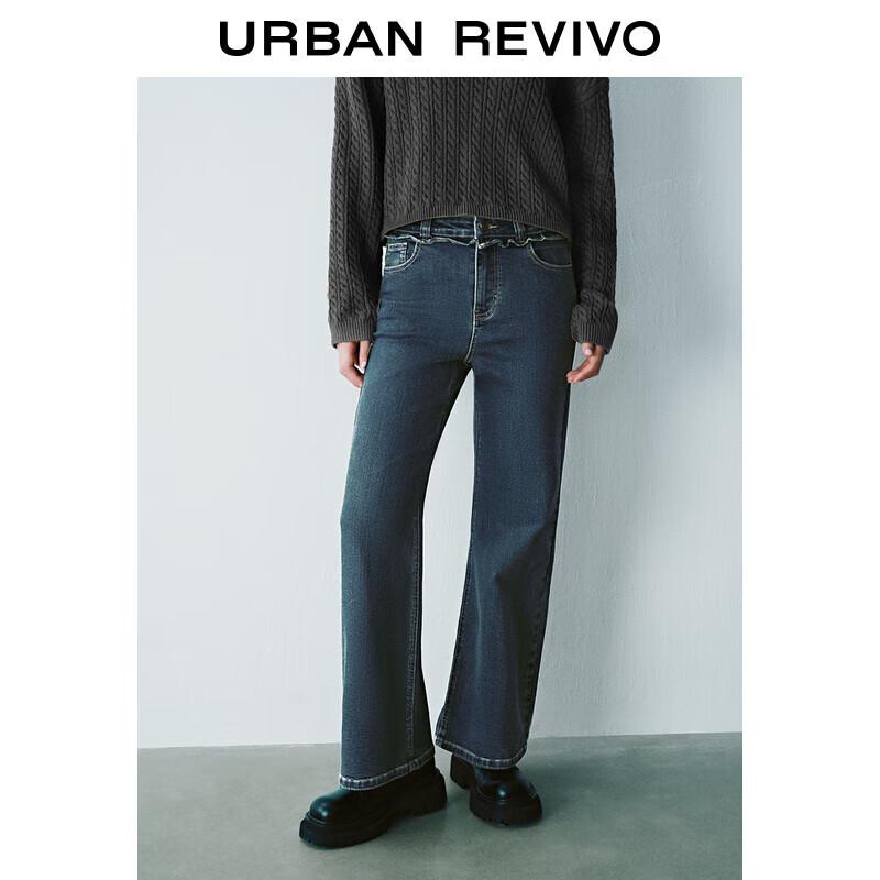 UR Women's Retro Ruffled Washed Denim Long Pants