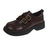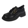 One-word buckle round head platform loafers women's 2025 autumn and winter college style one-pedal small leather shoes retro style low heels