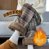 Lansha Women's Winter High-Waist Fleece-Lined Plaid Wide-Leg Pants