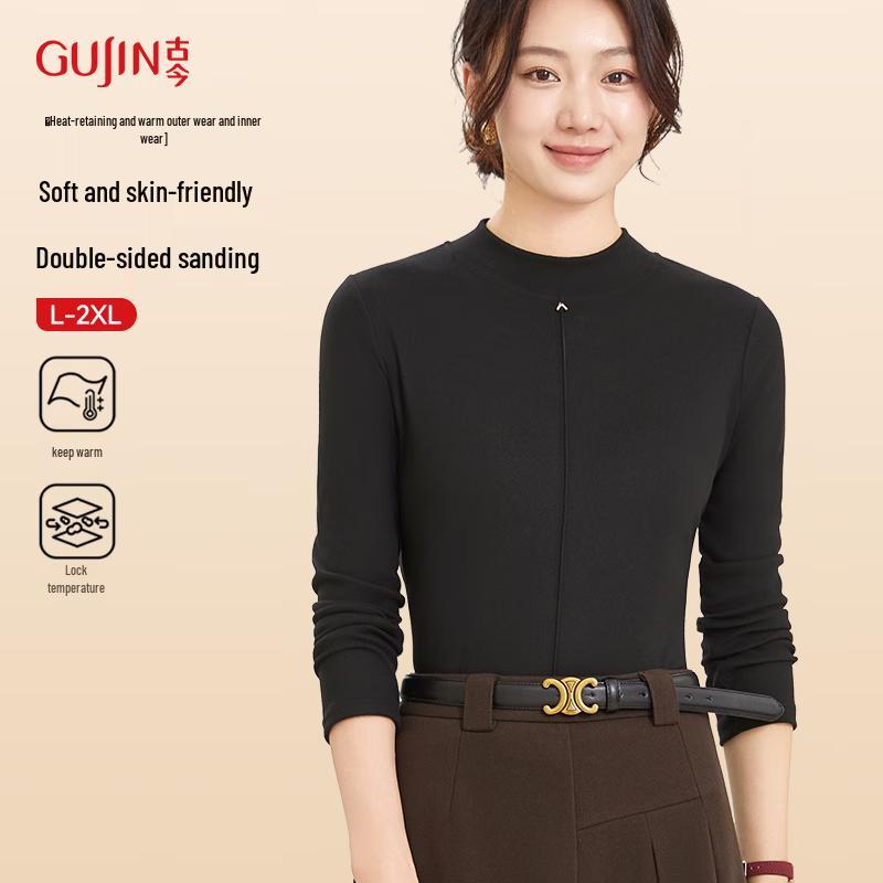 GUJIN Women's Double-Brushed Thermal V-Neck Top