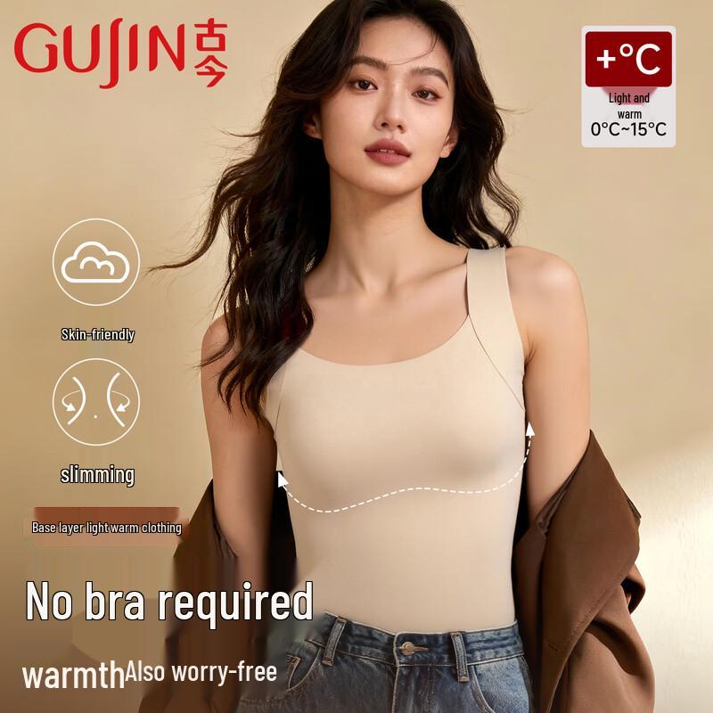 GUJIN Women's Seamless Thermal Vest with Built-in Bra