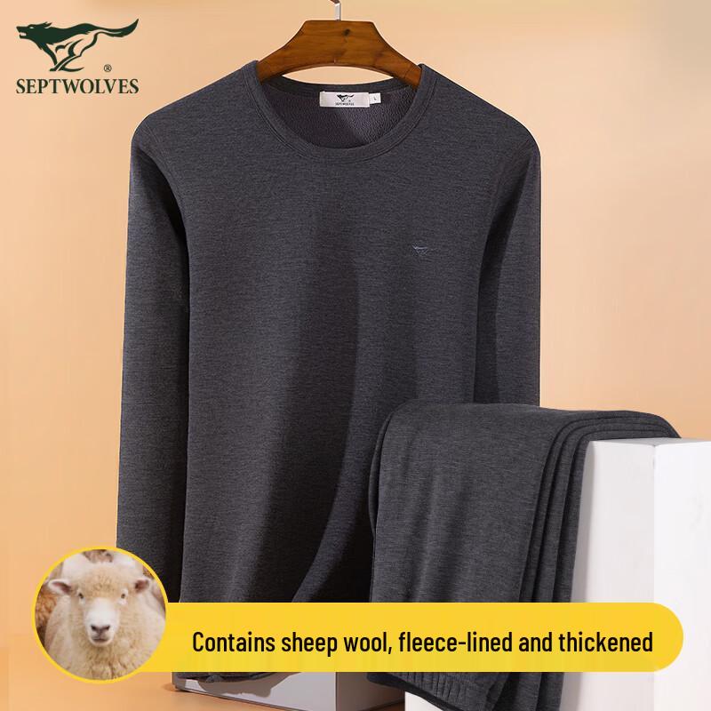 Septwolves Men's Wool Blend Thickened Thermal Underwear Set