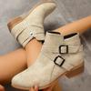 Big Size Women Pointed Toe Ankle Boots Chunky Heel Buckle Boots Side Zipper Retro Autumn Winter Designer Shoes Zapatos De Mujer