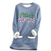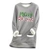 Damska luźna i wygodna bluzka z okrągłym dekoltem i nadrukiem świątecznym, z kieszeniami i długim rękawem