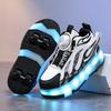 2025 Nowe dziecięce czterokołowe buty do szybkiego chodzenia dla początkujących z podświetlanym obrotowym przyciskiem i automatycznym zwijaniem dla chłopców, sneakersy
