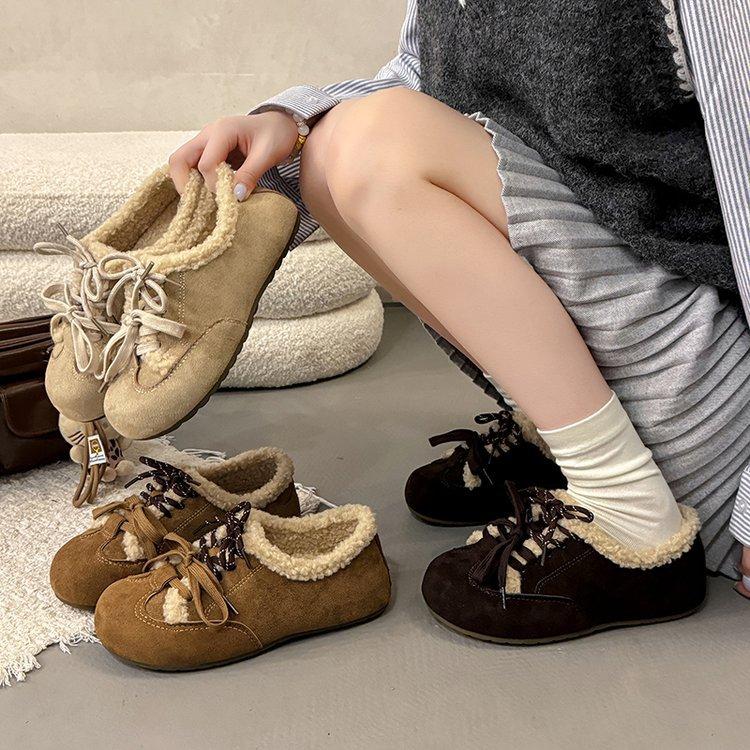 Lamb wool cotton shoes women's shoes 2025 new autumn and winter velvet German training shoes retro Forrest Gump shoes Birken Doudou shoes