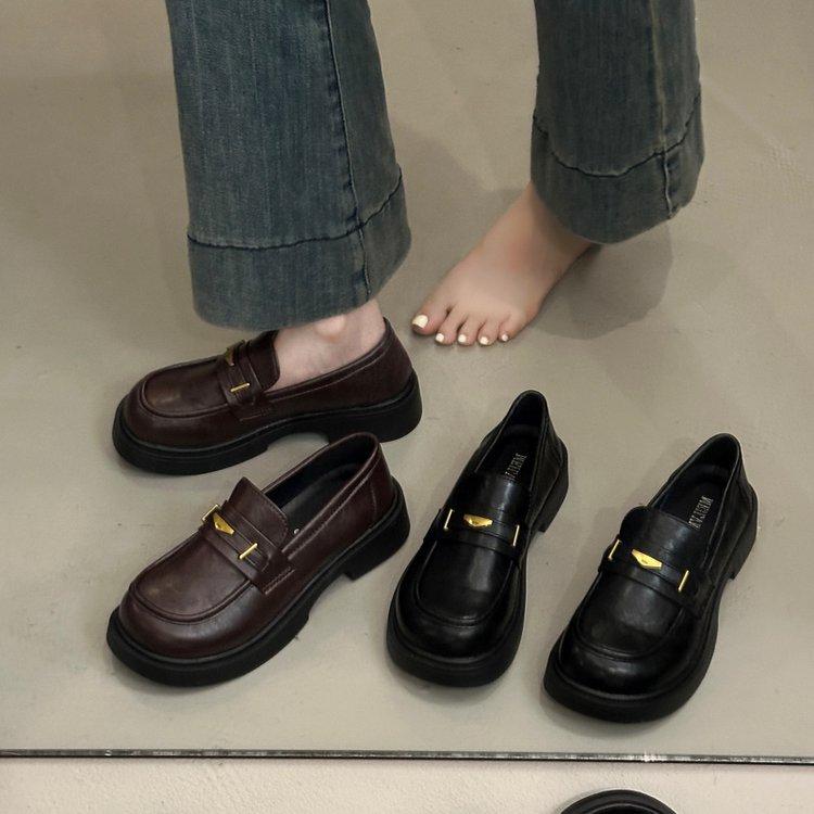 Cowhide version loafers women's 2025 autumn new shoes retro commuter black platform British style small leather shoes