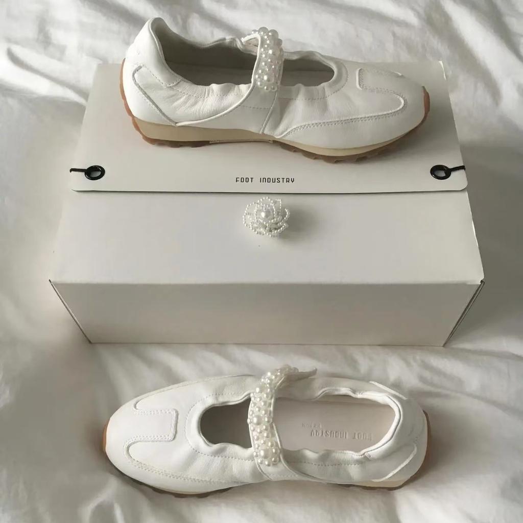 Spot cowhide version~ 2025 new pearl single shoes women's summer Velcro Mary Jane niche casual moral training shoes