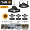 Product Specifications: 100W UFO LED high bay light for factory and warehouse lighting, IP66 waterproof and dustproof, AC100-277V, 50-60Hz input voltage. Color temperature: 6000K; weight: approximately 2.18kg; beam angle: 90°. Includes 3m plug cord. No installation is required, just power it on and it's ready to use.