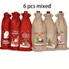 6 szt. Świąteczna torba na butelkę wina na prezent Czerwona i khaki jutowa torba tote ze Świętym Mikołajem Świąteczne i świąteczne pozdrowienia Świąteczna