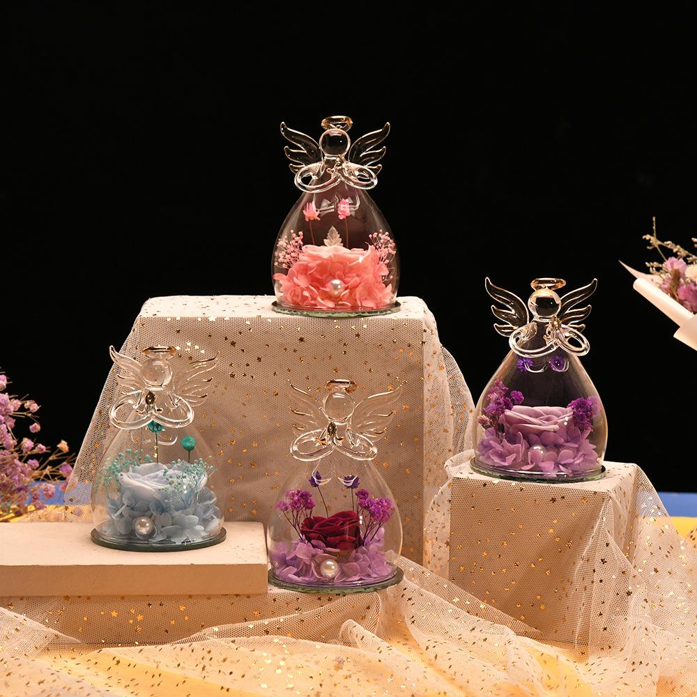 Szklana Kopuła z Aniołem i Zachowanymi Różami - Wieczne Kwiaty Zestaw Prezentowy na Walentynki, Dzień Matki, Boże Narodzenie, Święto Dziękczynienia, Ukończenie Szkoły