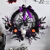 1PC HALLOWEEN wreath Simulated Skull Halloween Haunted house horror party decoration Door hanging purple wreath and rattan ring