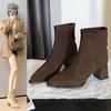 Francuskie retro zamszowe botki damskie jesienno-zimowe nowe gruby obcas cienkie botki Martin uniwersalny wysoki obcas