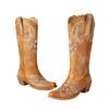 Women's Shoes Boots Embroidered Tall Boots Thick Heel Sleeve Pointed Knight Boots Vintage Martin Boots