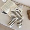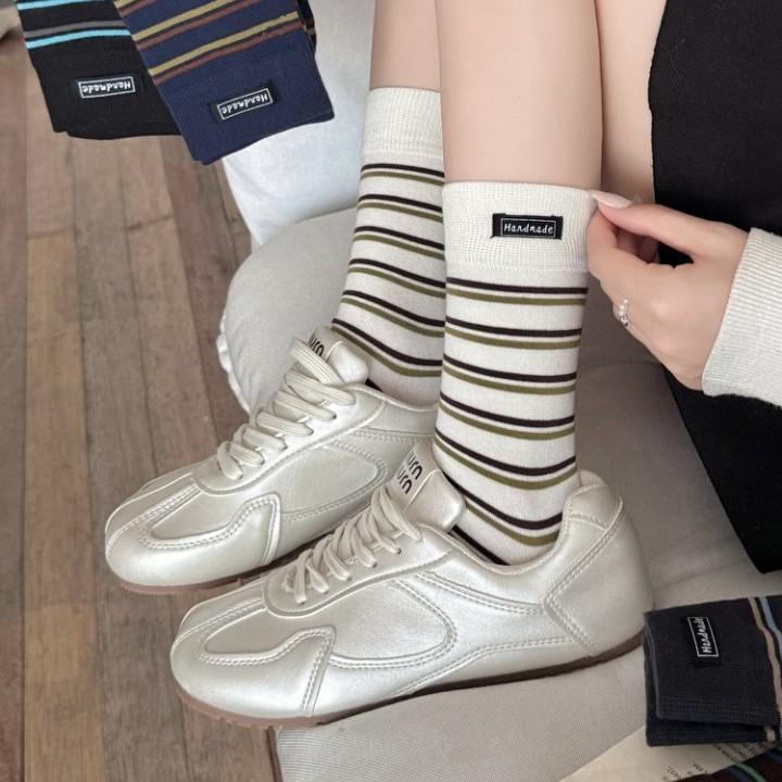 Female Spring and Autumn Retro Striped Cloth Logo Leisure Sports Boneless Tube Stack Socks