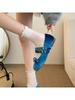 Skarpetki Lolita Wiosna i Lato Dziurkowane Koronka Kokardka Cienkie Oddychające Białe Pończochy Średnia Długość Codzienne Czarne Skarpety