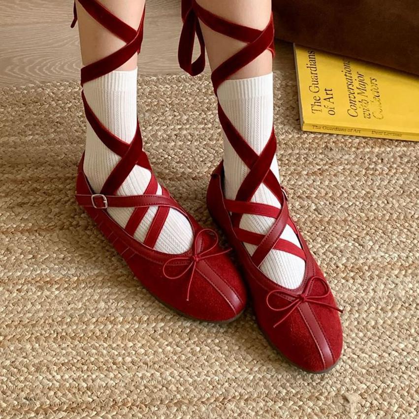 IPPEUM Red Mary Janes For Women 2025 New Ballerina Flat PU Leather Round Toe Ballet Flats Shoes Black