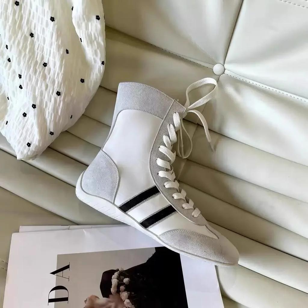 Lightweight Soft Bottom High Top Women's Dequn Shoes 2025 Summer New Style Ugly Cute Heightening Laced Color Block Sports Shoes