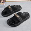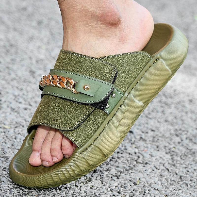 Modny Letni Trend Nowe Męskie Gladiatorki Metalowy Łańcuch Zamszowa Skóra Platforma Buty Casual Oddychające Sandały na Plaże Klapki Outdoor