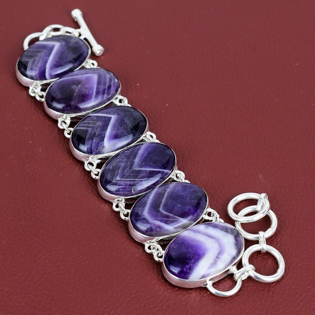 Chevron amethyst bracelet natural gemstone jewelry 925 sterling silver bracelet adjustable chain handmade bracelet designer jewelry for gift
