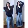 A New High-end Spring and Autumn Sweater Jacket for Women with Contrasting Color Striped Knitting Cardigan and A Petite Top