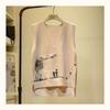 Wyszywana dzianinowa kamizelka swetrowa z dekoltem w serek damska wzór kreskówkowy falbanka luźna bez rękawów bazowy pulower kamizelka swetrowa kobiety