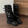 Fashion Designer Rivet Women Trouser Legs High Boots Fashion Punk Style Shoes Autumn Winter Thick Heel Ladies Knight Long Booties