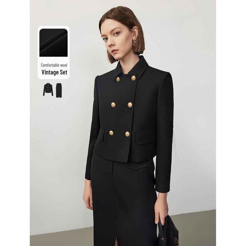 Langzi Wool Blend Retro Double-Breasted Short Jacket