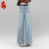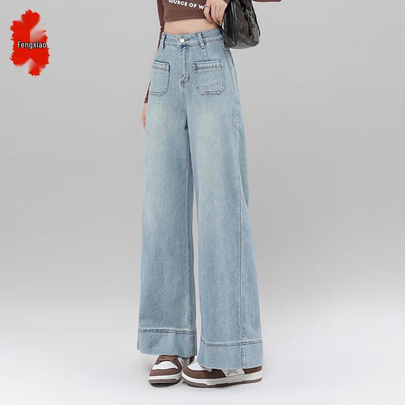 Fengxiao 2025 Autumn Women's Loose High-Waisted Straight-Leg Jeans