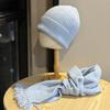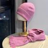 Knitted Hat and Scarf Two piece Set for Women in Autumn and Winter Versatile Warm and Thickened Cold Proof Small Woolen Hat That Shows Face