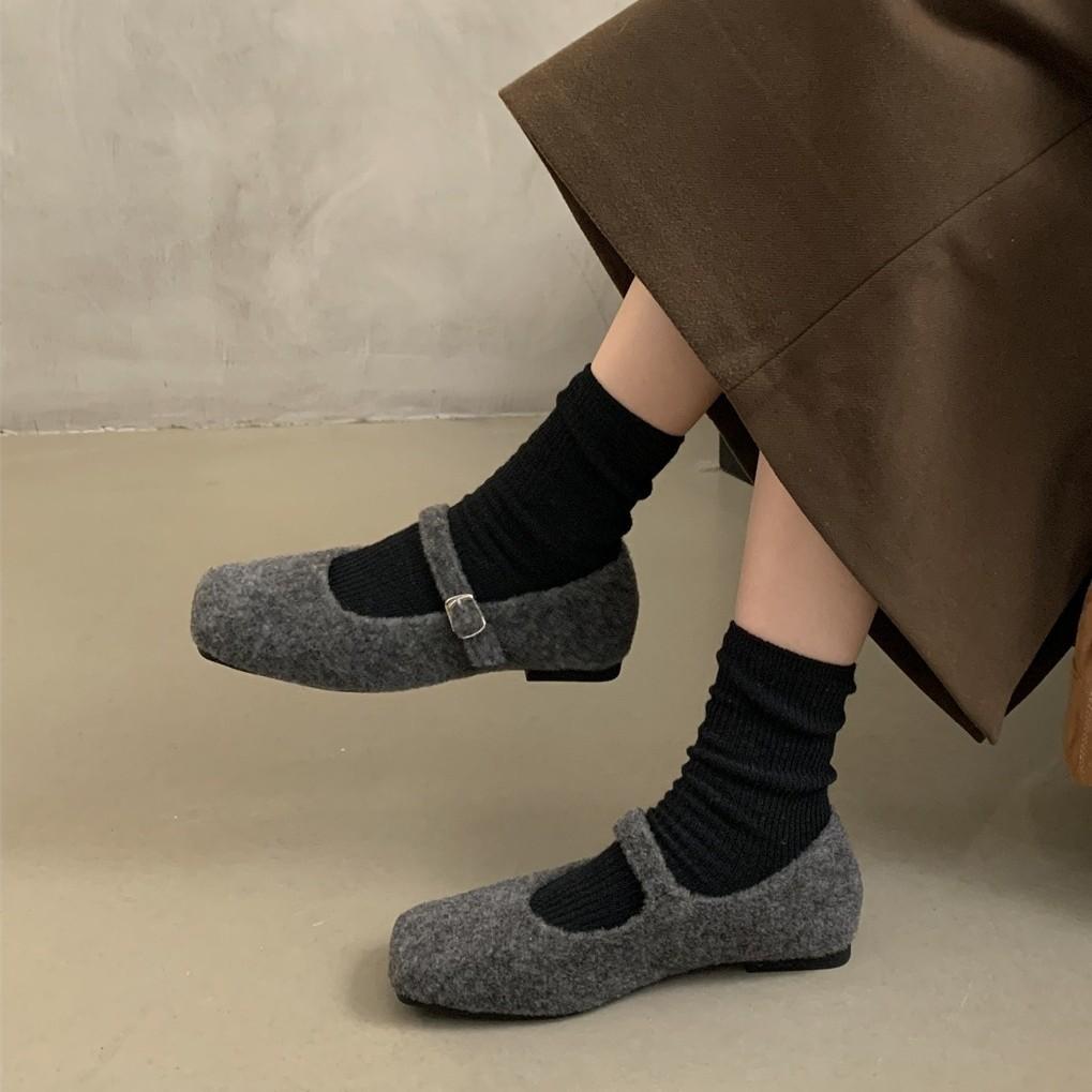Wysokiej klasy puszyste buty w stylu zagranicznym na odzież wierzchnią damską 2025 nowe jesienno-zimowe francuskie retro temperament płaskie Mary Jane pojedyncze buty