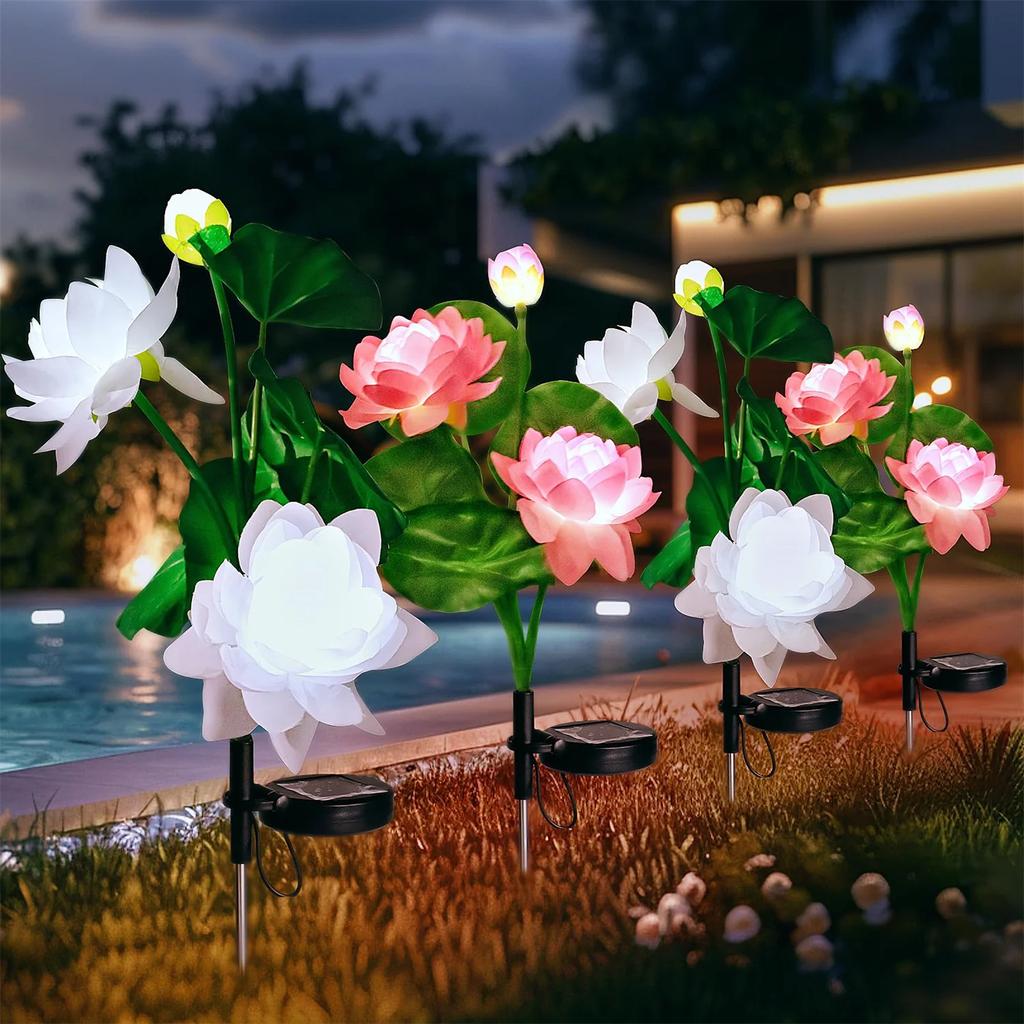 Lampki LED Solarne Kwiaty Lotosu Zewnętrzne Wodoodporne Lampy Krajobrazowe Zimna Biel do Dekoracji Ogrodu Ganku Trawnika Podwórka Lampa Solarna