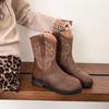 Vintage Western Cowboy Boots Women's Fall 2025 New Coarse Heel Embroidered Maillard Short Boots Martin Boots