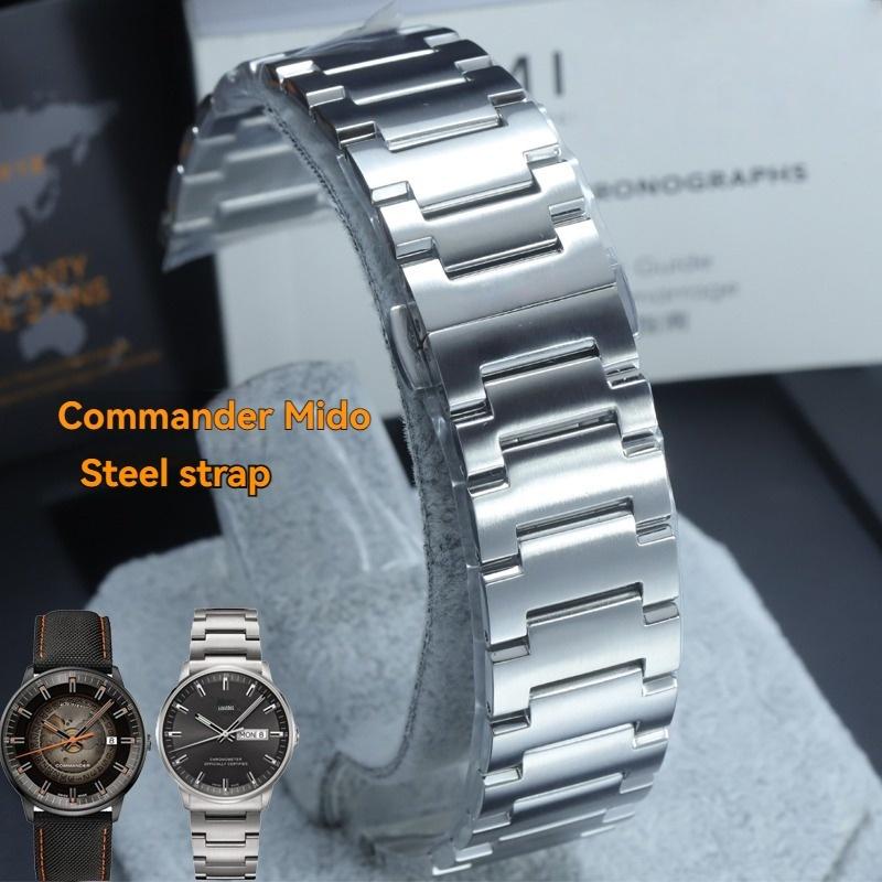 21 22mm Solidny Zakrzywiony Pasek do Mido Commander Chain m021431A Pasek ze Stali Nierdzewnej m021407 2 Generacja Męski Pasek do Zegarka Sternika