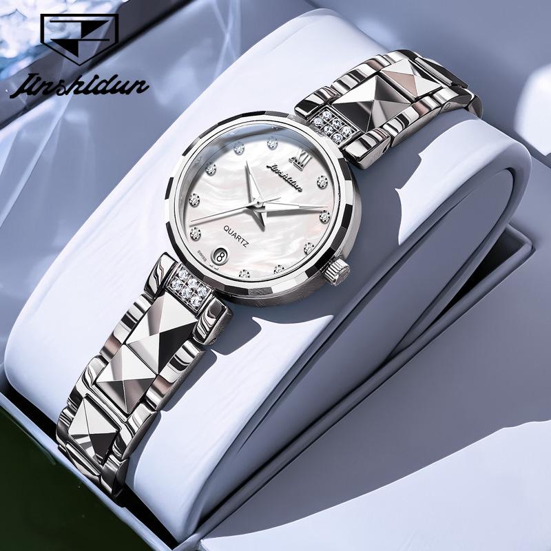 JINSHIDUN Brand Wristwatches, Calendar Tungsten Steel Quartz Watches, Waterproof Ladies' Watches, Women's Watches