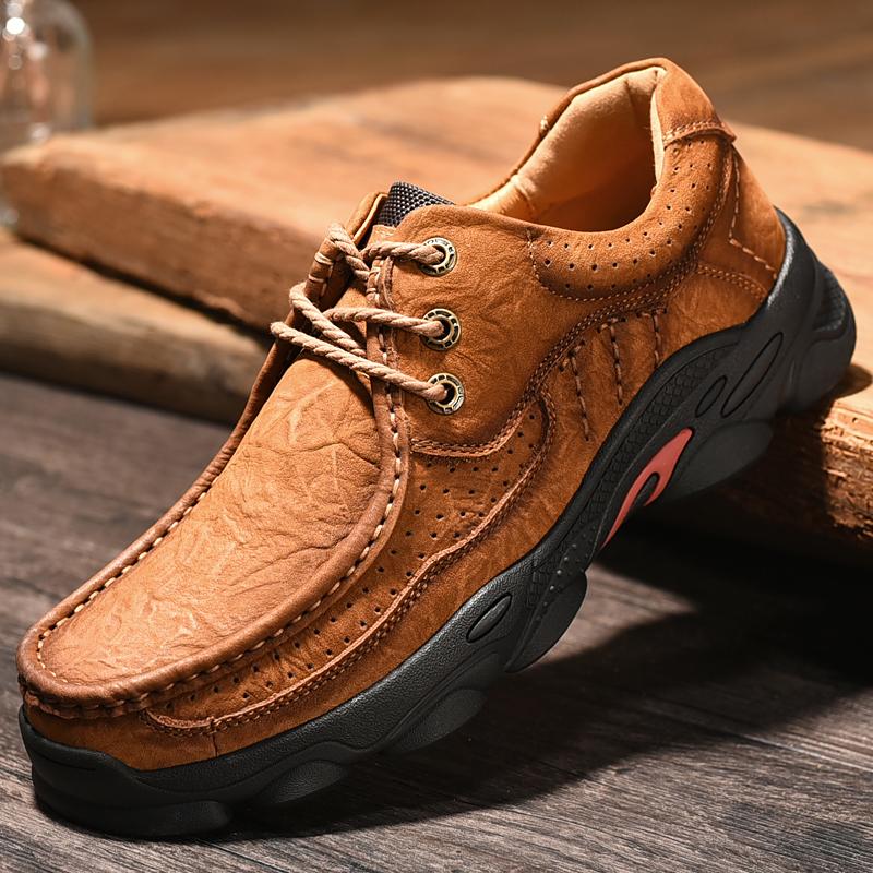 Genuine Leather Men Casual Shoes Luxury Brand Lace Up Sneakers New Trendy Man Hiking Shoes Comfy All-match Male Treking Footwear