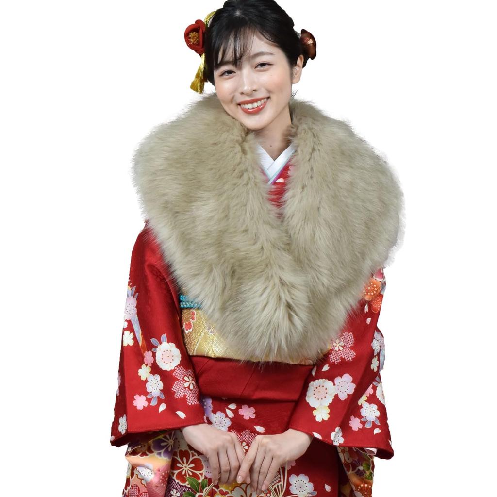 Material: Outer: 100% Acrylic; Base: 50% Acrylic, 50% Polyester; Lining: 100% Polyester; Filling: 100% Polyester; Size: Approx. 145cm Long x 28cm Wide (including pile); Weight: Approx. 400g; Fasteners: 2 Clips, 1 String, 1 Snap Fastener; Country of Origin: Made in China; Product Description: This faux fur shawl adds a touch of glamour to any special occasion, making it an essential accessory for your Coming-of-Age Ceremony. So soft and fluffy that it could be mistaken for real fur, it envelops you in warmth at the wide nape of your neckline, adding a touch of volume and glamour to your face, creating a special atmosphere befitting a special occasion. The shawl's clips, strings, and snap fasteners allow you to customize the way you wrap it. It can be worn with both Japanese and Western clothing, making it perfect for coming-of-age ceremonies and other formal occasions. Model Height: 164cm; Note: The listed size is the outer dimensions measured flat. There may be slight variations in the product. The fur color, texture, and color depth may vary from item to item. We appreciate your understanding. This product is sold by our company.
