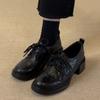 Lan Cabinet~ 2025 Autumn British retro round head lace-up loafers commuting versatile thick heel small leather shoes women's single shoes