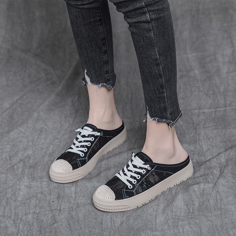 Fisherman shoes women's 2025 summer new breathable lazy one-pedal slippers casual flat lace fashion mesh shoes