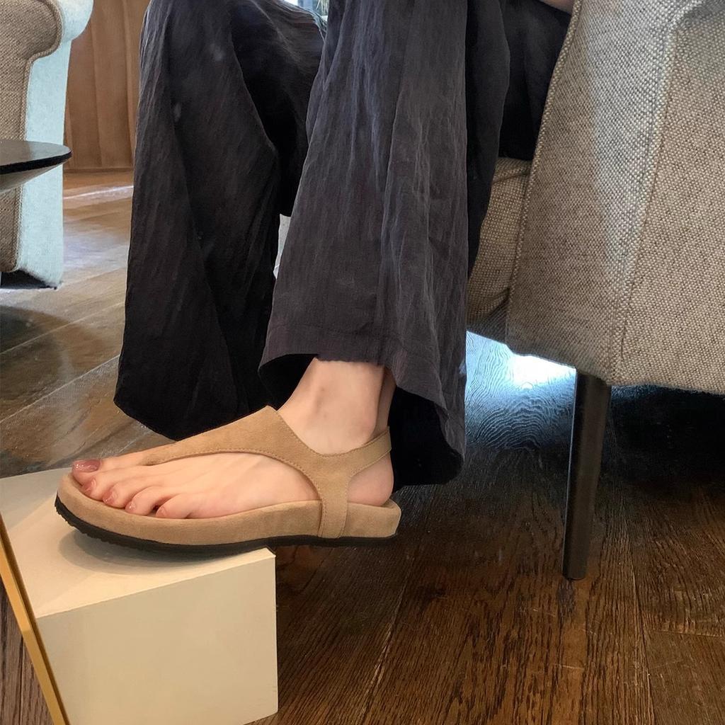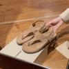 Wersja ze skóry owczej~ Prosty temperament jodełka retro nosek sandały rzymskie damskie letnie wakacje płaska podeszwa klapki zimowe